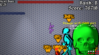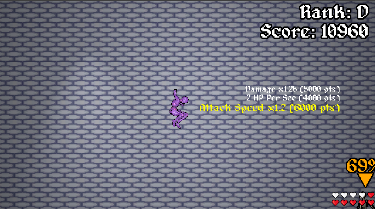 Use Score to upgrade and earn enough buffs to defeat the boss.